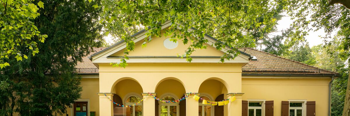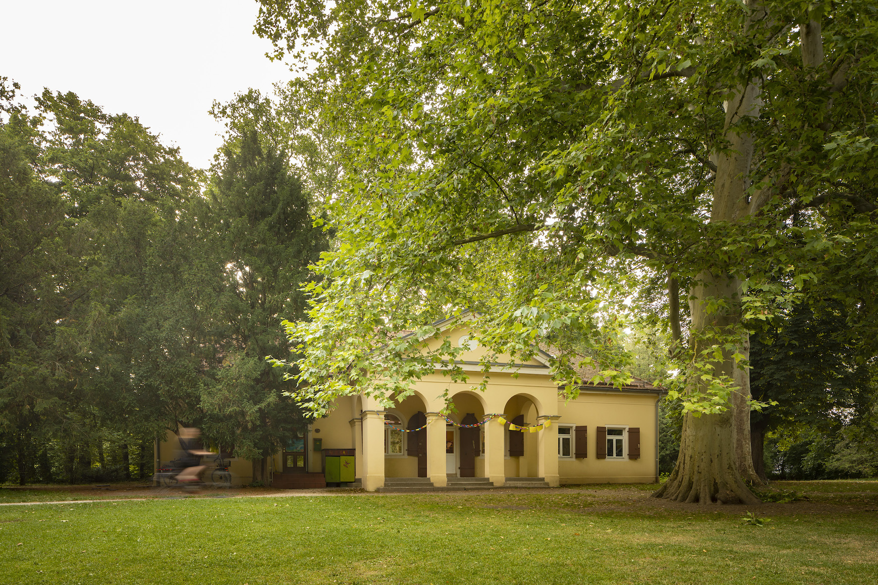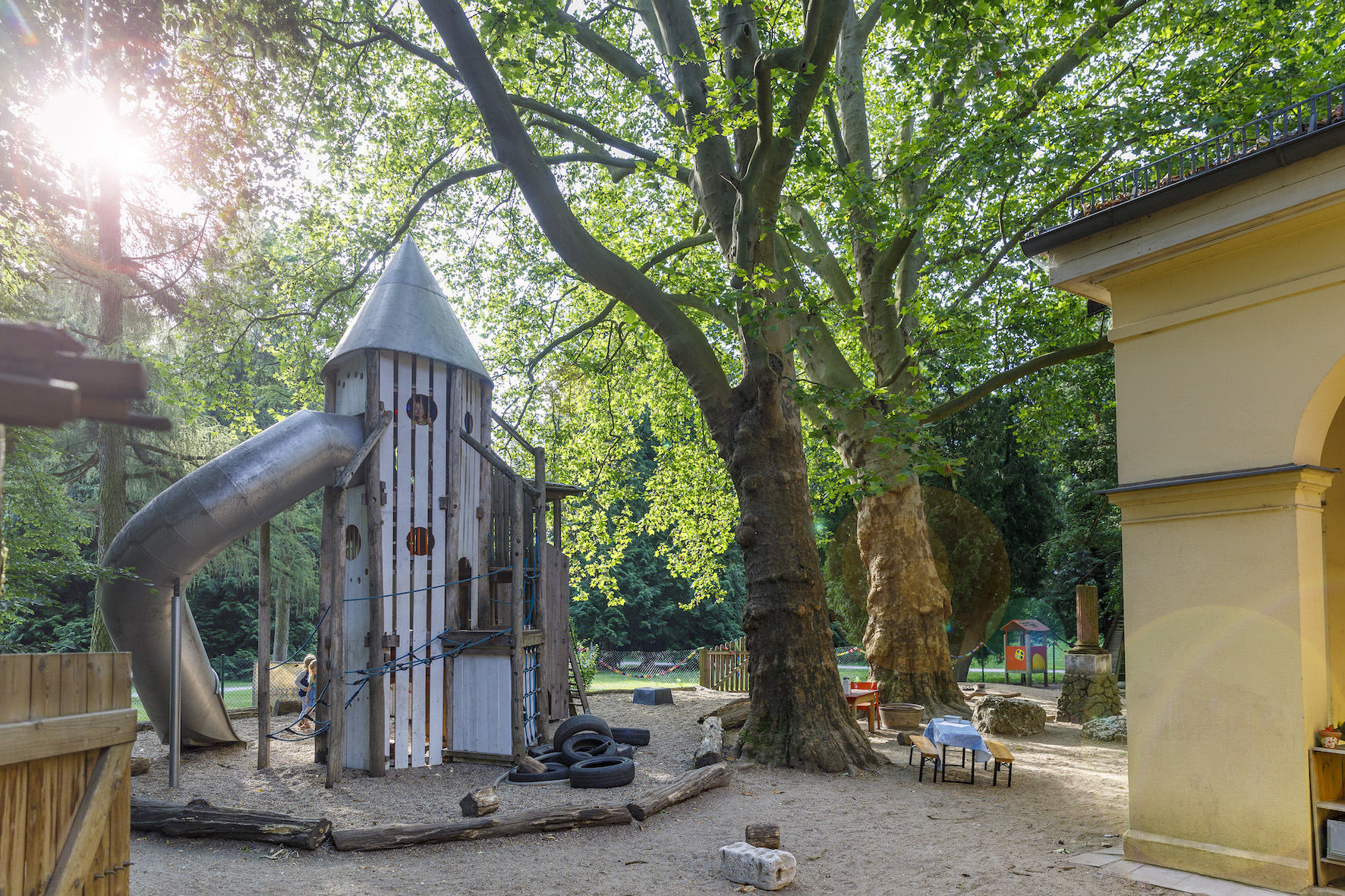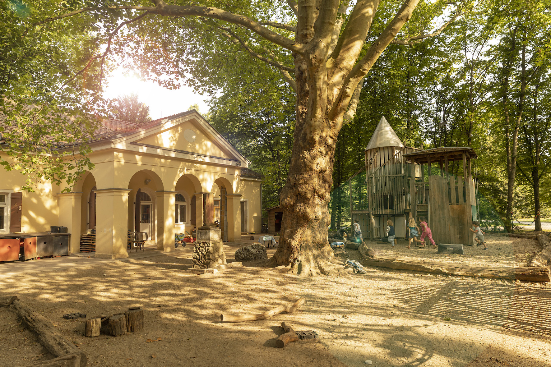 Der Kindergarten ist seit 1974 mitten im Stadtpark im Regensburger Westen in einem denkmalgeschützen und etwa 200 Jahre alten Gebäude untergebracht.