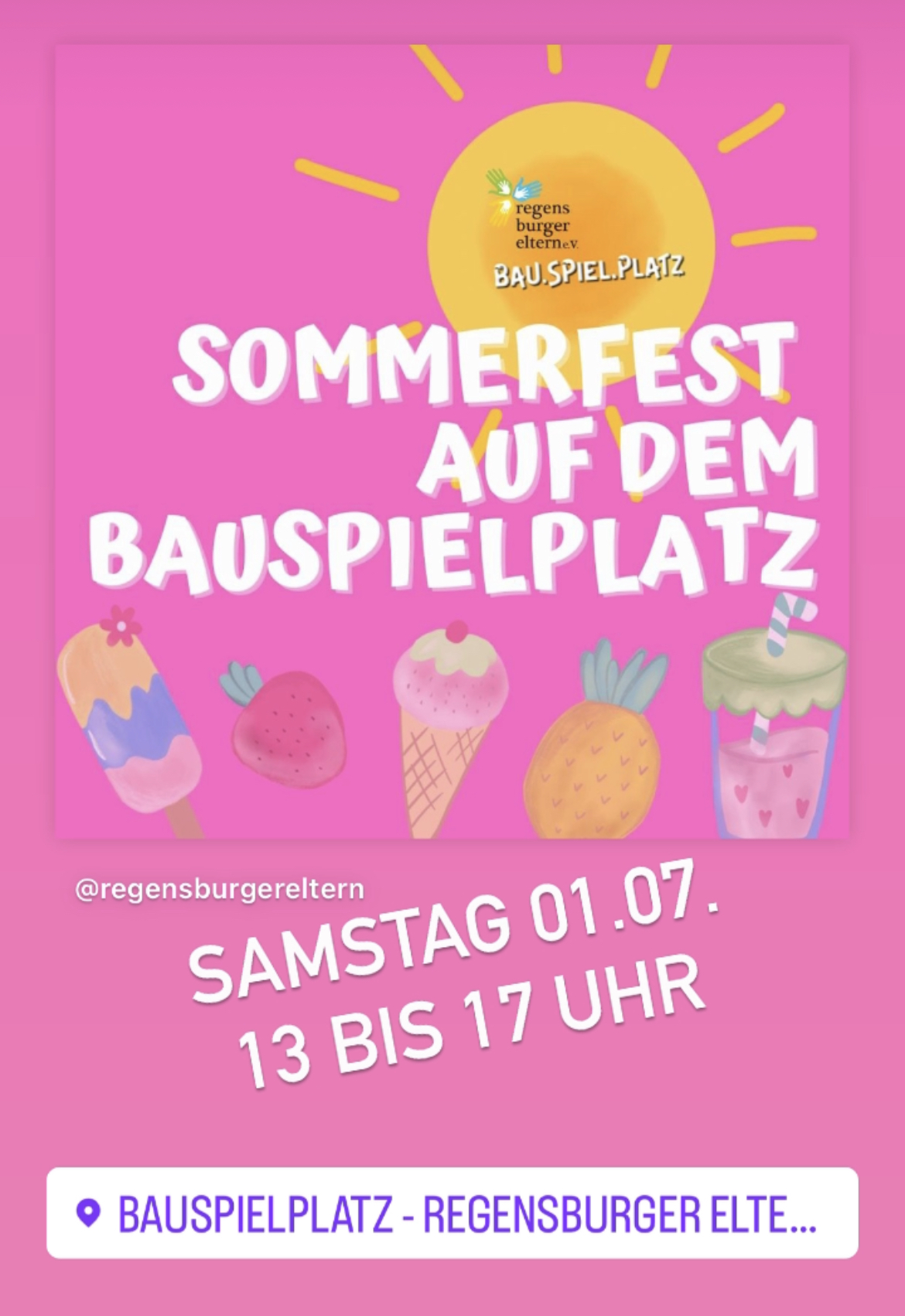 Am Samstag 01.07. wird auf dem Bauspielplatz der Regensburger Eltern in der Fort-Skelly-Straße groß gefeiert: Der nächste reguläre Familientag wird zum Sommerfest für Klein und Groß mit vielen tollen Angeboten.