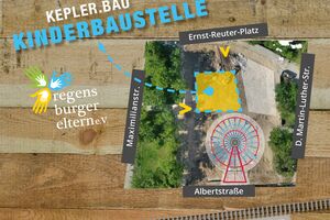 Hämmern, Sägen, Bauen und Werkeln für Kinder - bis Weihnachten wird die leerstehende Baufläche am Ernst-Reuter-Platz mit Leben gefüllt. Ein Riesenrad, Aktionsflächen für Kunst, Transition Regensburg, der Kunstverein Graz und das Bauspielplatz-Team der Regensburger Eltern bespielen das Keplerareal.
